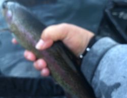 The brush was oppressive. My clothes and skin were pulled at by berry bush thorns. My rod was hooked at every opportunity. I began wading in the water to get a little relief from the brush. Finally deciding that the only way I had a chance at meeting any Shasta Rainbow was to get a fly in the water, I loosened my rig and began fishing- anywhere... everywhere. I felt a bump! A few drifts later in a different spot, I felt it again. Nice! Right place, right time, right offering. All was a good sign that I was actually fishing. However, I had missed the sets and had no fish to hand. Oh- and how I love the smell of fish on my hands! The daylight was running short on my evening efforts and my stomach was growling in hunger. I began to play the "One last cast" game at a large pool. I had a bump or two but nothing grabbed well. When I finally got to my last- last cast, I felt a firm pull and set well and quickly. A beautiful 12 or 13 inch trout came into view on the end of my line. He had taken a caddis pupa and become my first Shasta Bow taken on the McCloud. And even more so, taken without the help of a mentor or guide. That felt like a big thing to me. It has taken me a long time to get to this point- the point where I catch a fish in a new place without someone to guide me or someone to follow. While I know experienced anglers would have caught a bunch of fish in this waterway, I was grateful for my one.... my first one!